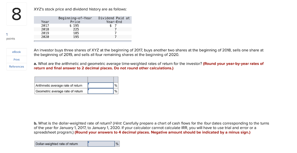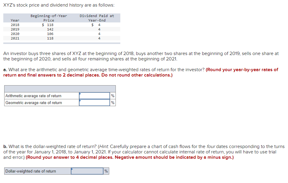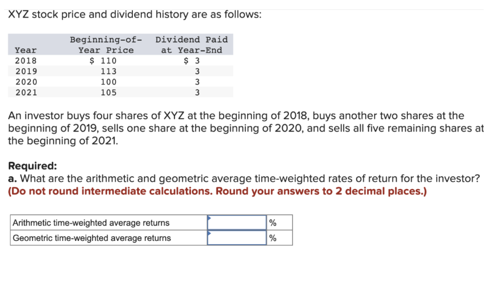 Solved Xyz Stock Price And Dividend History Are As Follows Chegg Com